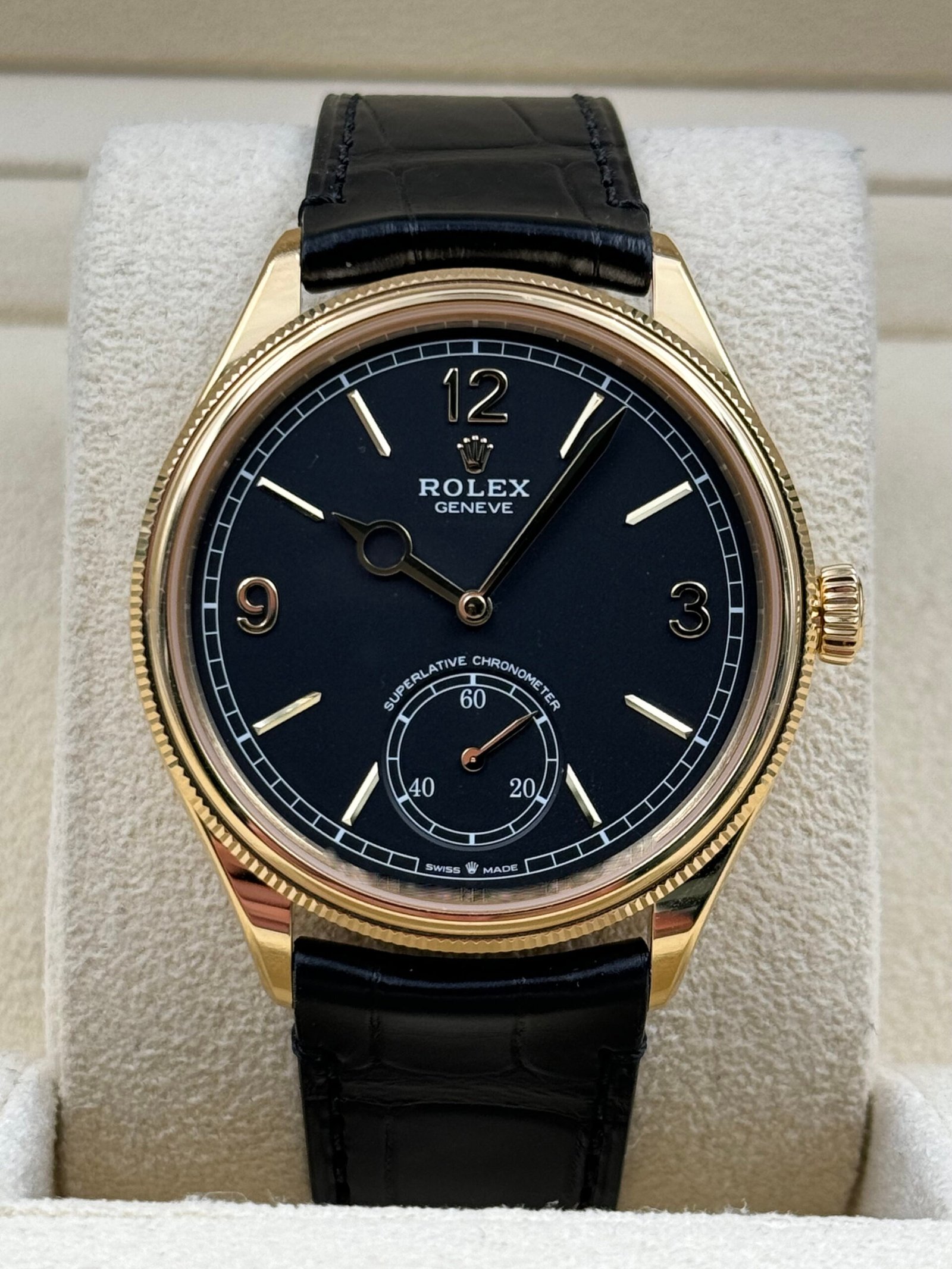 The Rolex Perpetual 1908 Ref. 52508 with a black dial is a testament to Rolex’s commitment to understated elegance and refined horology. This timepiece embodies the brand’s pursuit of perfection, offering a classic aesthetic with contemporary precision.
