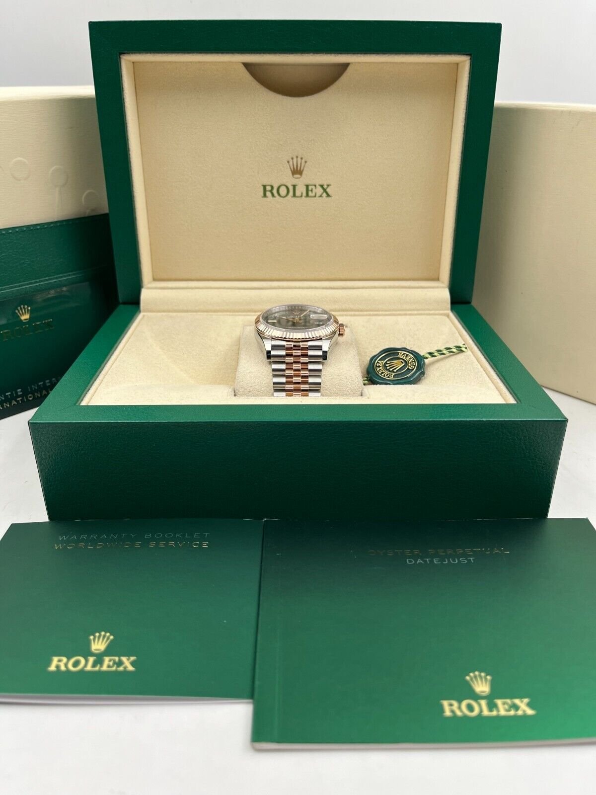 Introducing the Rolex Datejust 36 126231 (Year: 2023) – a testament to timeless design and precision. This piece features a grey dial, two tone rose gold/stainless steel bracelet, and 36 mm steel case, making it a statement piece that effortlessly captures attention.