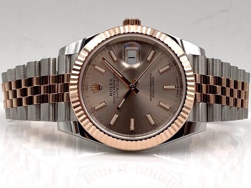 Introducing the Rolex Datejust 41 126331 (Year: 2024) – a testament to timeless design and precision. This piece features a gold dial, two tone rose gold/stainless steel bracelet, and 41 mm steel case, making it a statement piece that effortlessly captures attention.