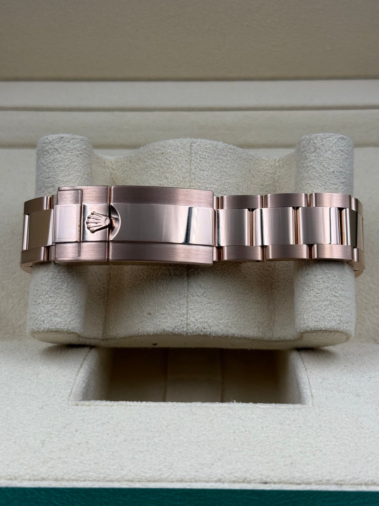 The Rolex Cosmograph Daytona Ref. 126505 comes equipped with a Rolex Oyster bracelet, crafted from solid 18k Everose gold. This luxurious bracelet seamlessly complements the watch’s overall design and ensures a comfortable and secure fit on the wrist throughout the day. The clasp features the Rolex Oysterlock safety clasp, ensuring the watch stays securely fastened. The use of Everose gold throughout the bracelet and case creates a cohesive and undeniably luxurious timepiece.
