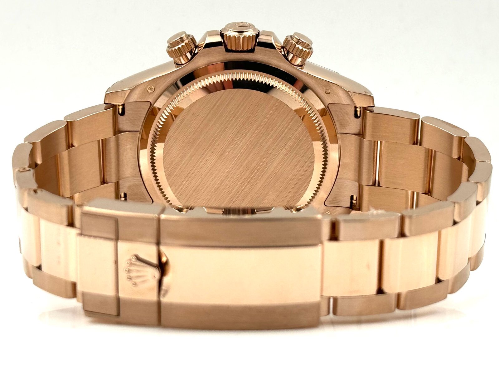 The Daytona 126505 features a 40mm case crafted from 18k Everose gold, Rolex’s exclusive rose gold alloy that ensures lasting beauty and resistance to fading. The polished Everose gold case exudes elegance and luxury, while the sleek design and carefully crafted proportions give the watch a bold yet refined presence on the wrist. The smooth fixed bezel, also in Everose gold, is engraved with a tachymetric scale, allowing wearers to measure average speeds over a given distance—an essential tool for professional drivers and racing fans.