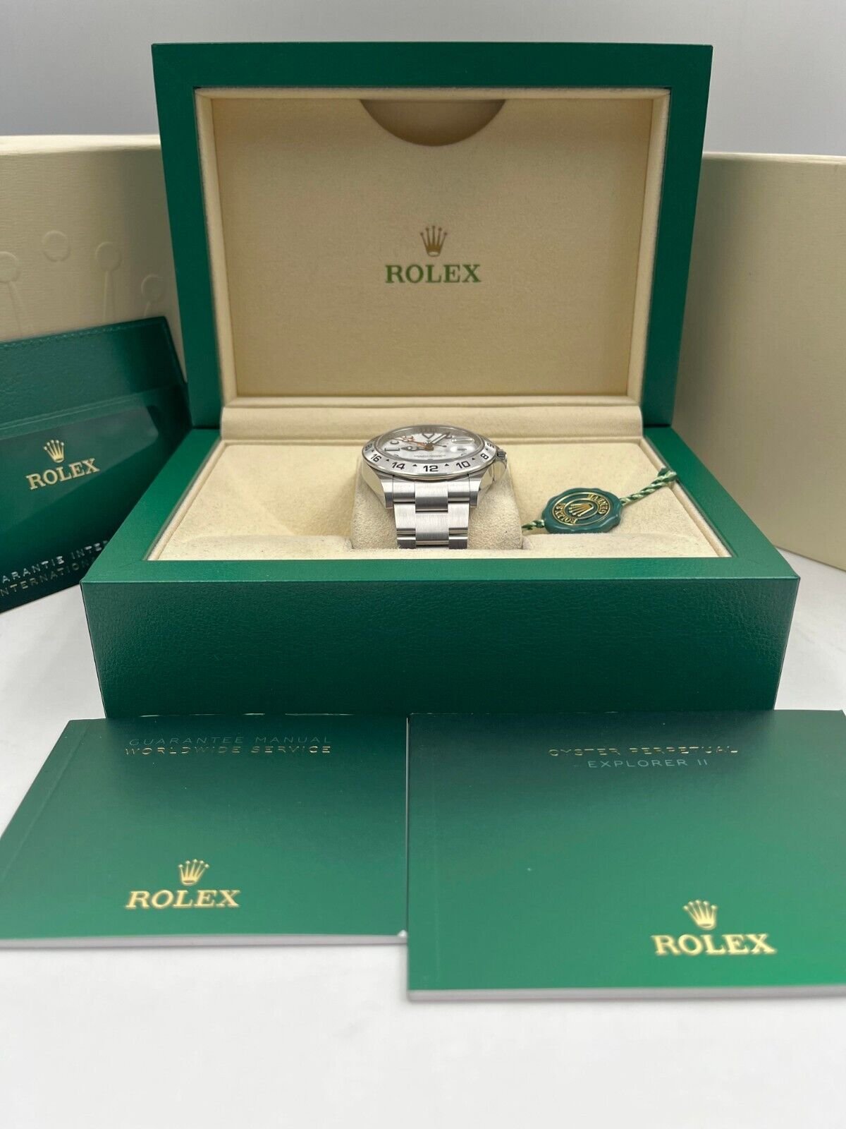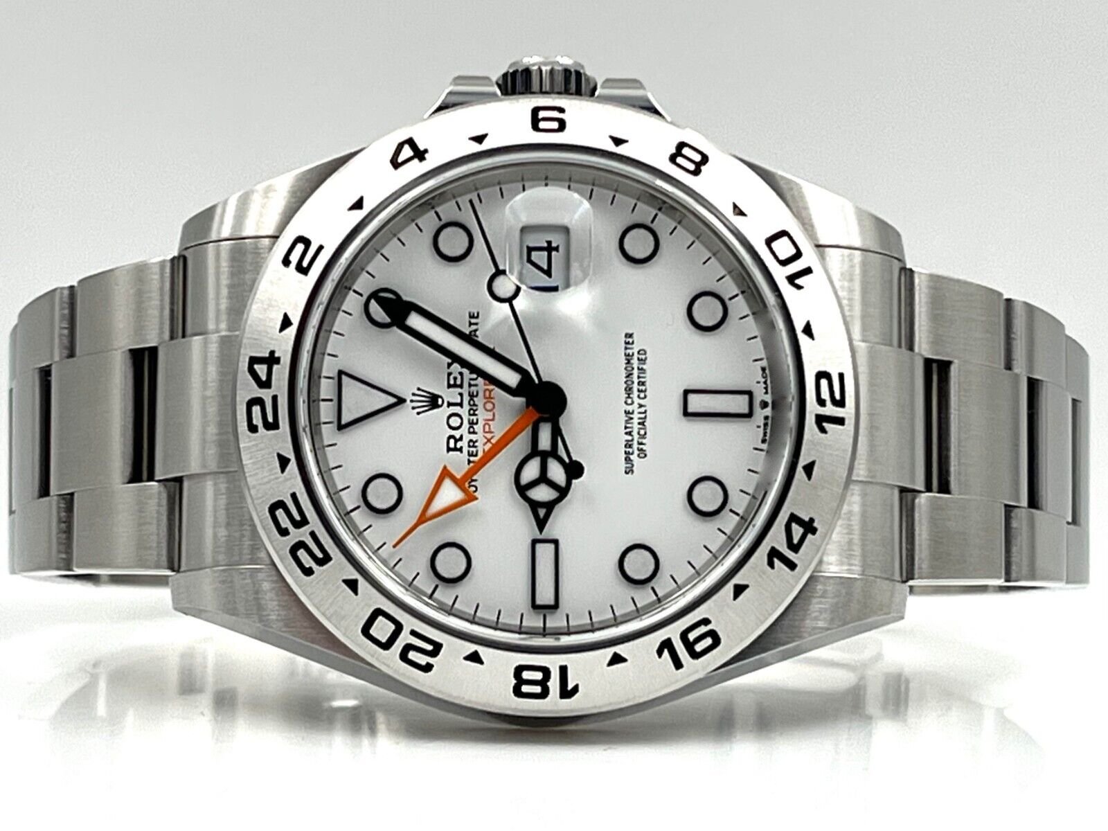 Introducing the Rolex Explorer II 226570 (Year: 2024) – a testament to timeless design and precision. This piece features a white dial, steel bracelet, and 42 mm steel case, making it a statement piece that effortlessly captures attention.